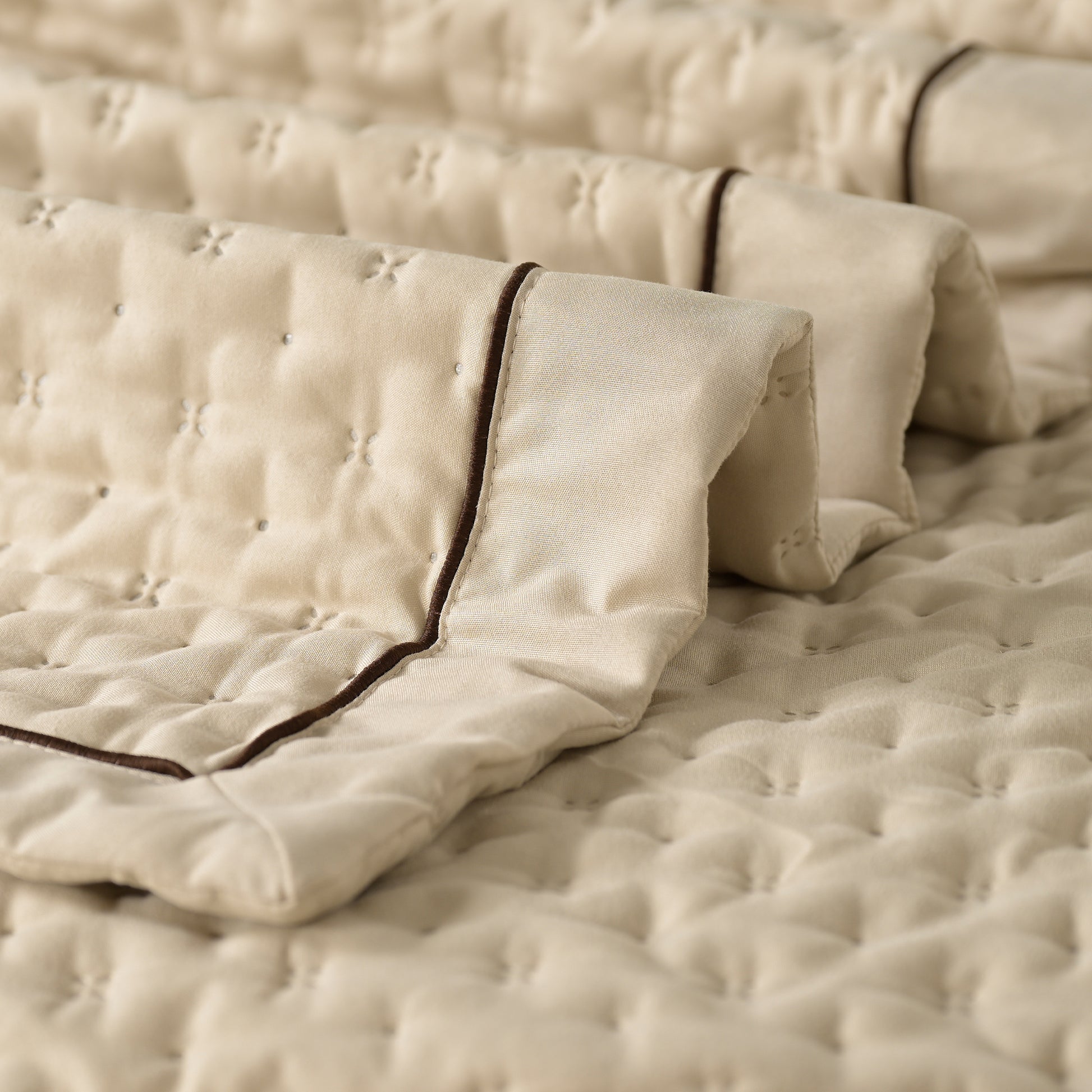 he fabric feels luxurious and soft against the skin, ensuring a comfortable night's sleep. The material is breathable, which is perfect for all seasons.